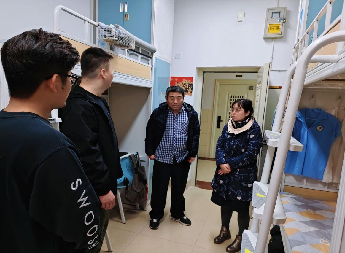 检查过程中,马传江与同学们亲切交流新宿舍的水电使用、供暖保障、空间布局等情况,细致询问住宿适应情况、日常学习状态及实际需求,并针对宿舍安全用电、内务整洁,离校安全、文明过节等事项耐心指导叮嘱,强调要将安全意识内化于心、外化于行,从细节入手、从小事严起,让安全成为校园生活的“常态标配”。同时,勉励同学们自觉养成良好生活习惯,以饱满的精神风貌投入日常学习与生活。